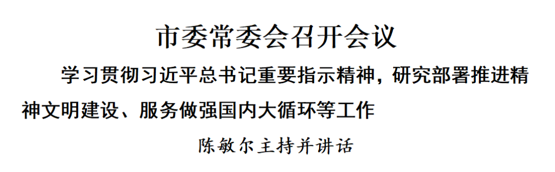 5月28日,市委常委会召开会议,学习贯彻习近平总书记对精神文明建设工作作出的重要指示精神和全国精神文明建设表彰大会、国务院做强国内大循环工作推进会精神,研究部署有关工作。市委书记陈敏尔主持会议并讲话。