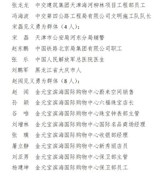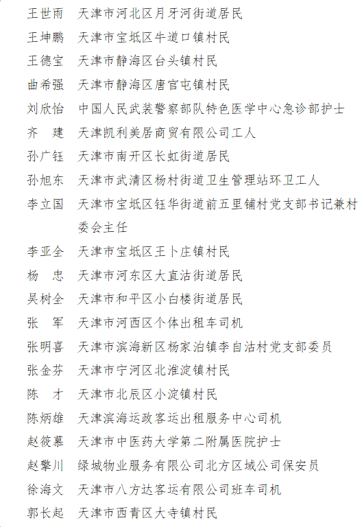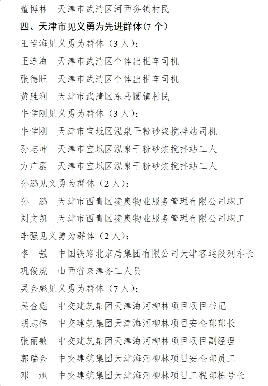 附件:天津市见义勇为模范、模范群体和先进个人、先进群体名单