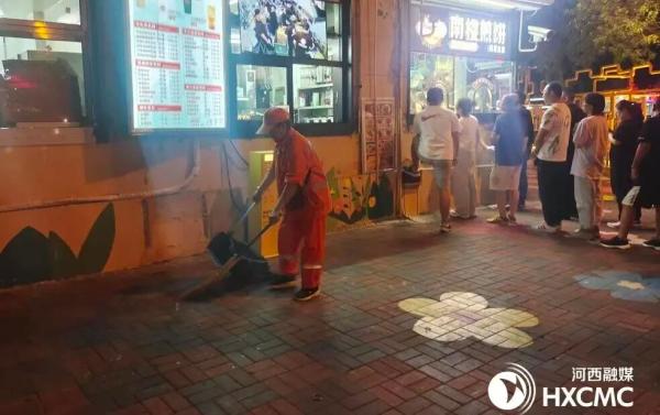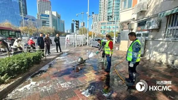 在硬件提升上,多部门协同发力:区城管委重铺围堤道地砖500方米,清洗粉刷新跃里住宅外立面,补植绿化、修整树池,并升级改造公厕设施;区住建委实施旧楼区综合改造,重做防水、修补墙面、翻新地面。面对南楼煎饼周边人流高峰,街道探索“潮汐式”保洁,加大重点时段清扫力度。协调中化学公司深度清洁路面油污200余平方米,重新粉刷社区党群服务中心围墙,开展环境卫生攻坚行动,并推动南楼煎饼购买每周3次的常态化保洁服务,夯实“品质街区”的环境基础。