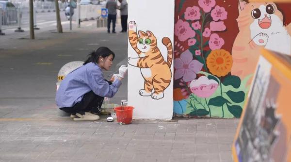 与此同时,挂甲寺街道联合天津美院团队,以“城市微更新”和“公共艺术融入”为抓手,打造“可阅读的街景空间”。十八街麻花、煎饼馃子等本土美食元素,社区党建日常、百姓生活场景、新就业群体故事,被巧妙绘入社区周边的墙面与城市家具,形成9处生动彩绘。设置“手动翻转信息栏”,用32个版面动态展示市、区、街、社区四级发展成果,让红色宣传融入生活场景。通过曲折造型车挡实现人车分流,创新结合“城市家具”与休憩功能,加设地灯、氛围灯,点亮街区的温暖“烟火气”。原创社区IP“饼饼仔”“果果仔”及相关文创,也为街区持续注入文化活力。