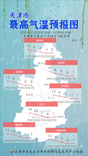 降温:预计周二、周三(2-3日)最高气温在0-1℃左右,最低气温降至-5℃,北部地区低至-8℃。